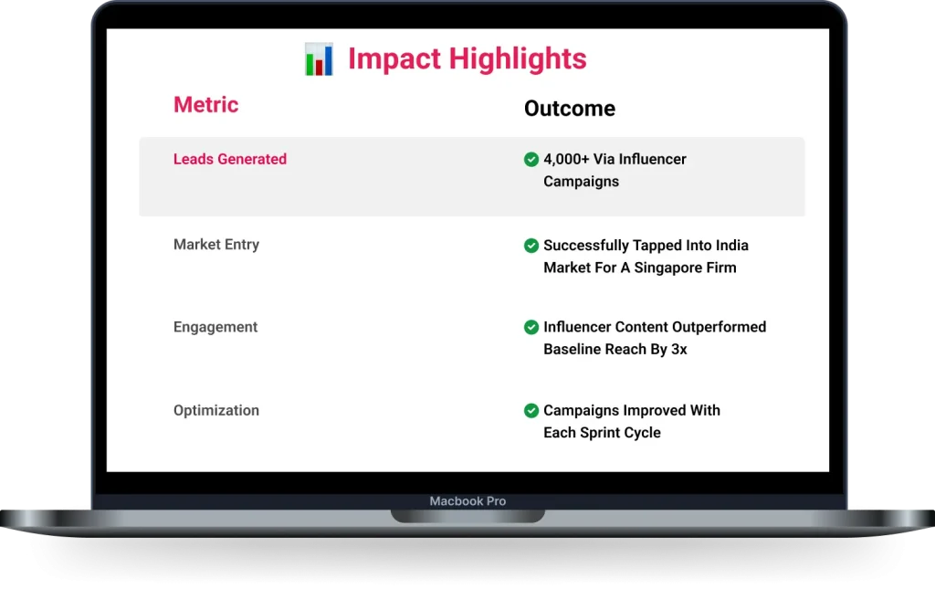 We started by identifying audience personas, niche categories, and regional nuances that would shape the influencer strategy. From there, we designed a custom GTM approach tailored to each region.